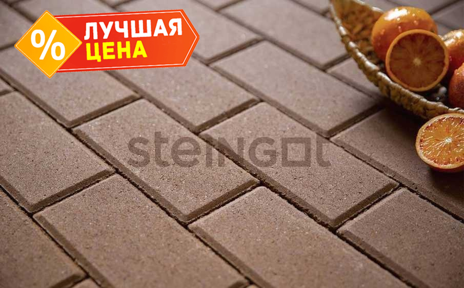 Плитка тротуарная Steingot Моно, Прямоугольник, фаска 5x5, коричневый, 200x100x60 мм