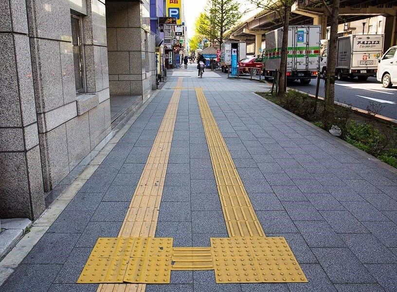 Тактильная плитка с продольными рифами 400x400x40 желтая